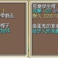 | 惡魔學生帽 [轉向外顯頭飾] (2021.2026) | 攻擊+20、命中+5,稱號:惡魔高校生 2026版追加給予人型系對象的傷害增傷5% ![]() |